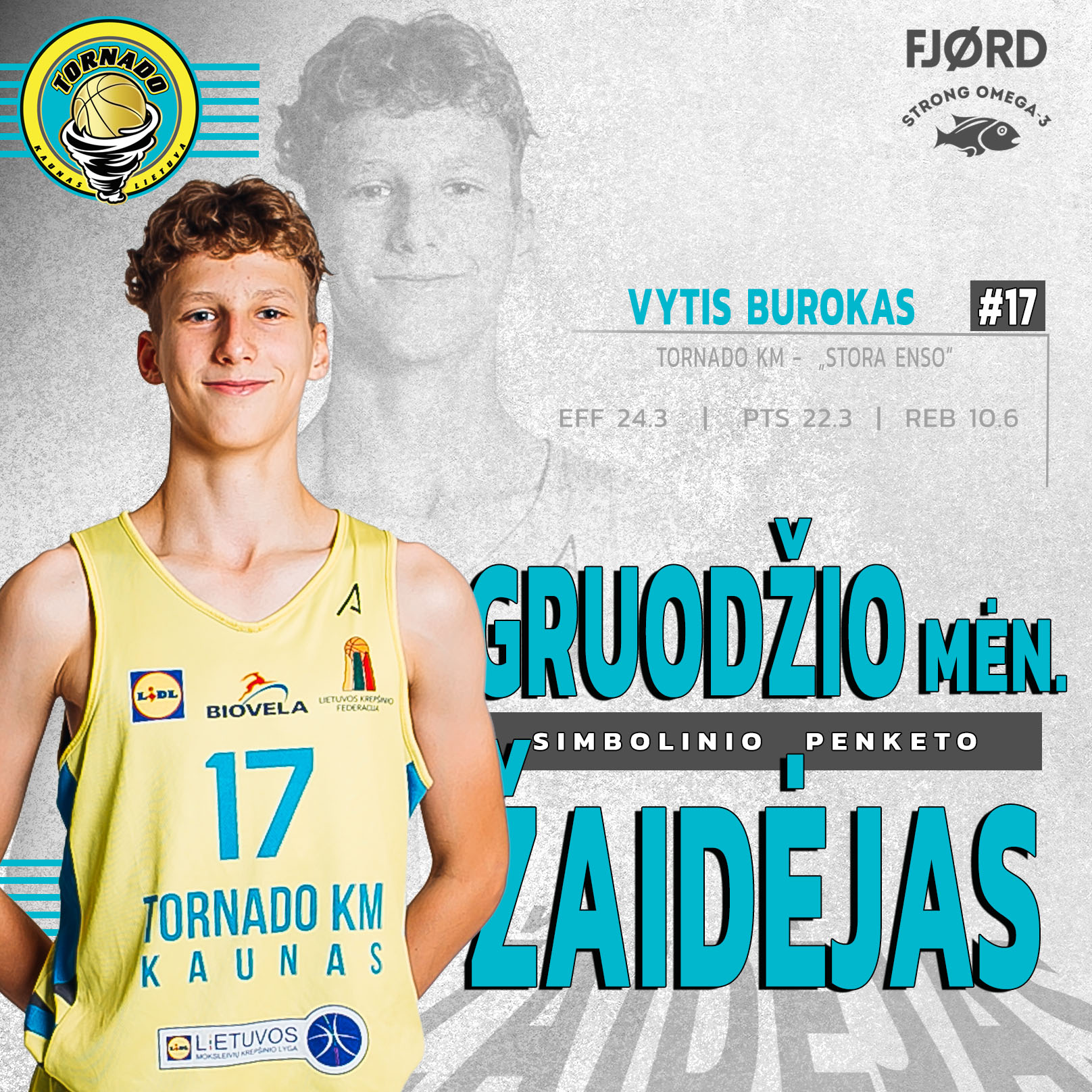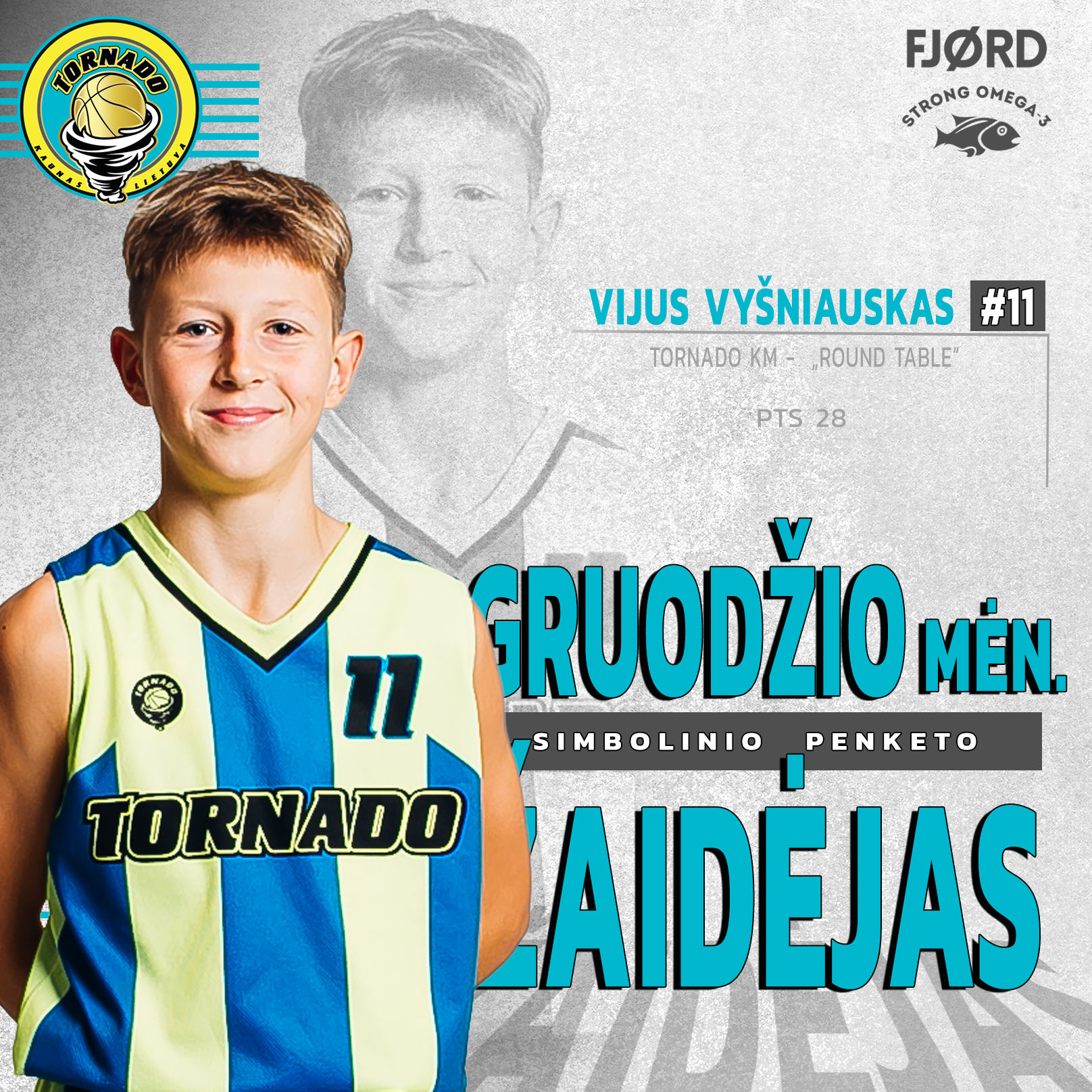 Gruodžio mėnesį Lietuvos moksleivių krepšinio lygos (MKL) rungtynės vyko intensyviu tempu, o visos mūsų komandos tęsė kovas čempionatuose. Kaip ir kiekvieną mėnesį, Tornado krepšinio mokyklos treneriai išrinko simbolinį penketą žaidėjų, kurie aikštelėje išsiskyrė ne tik statistiniais rodikliais, bet ir darbštumu, atsakomybe bei svarbiu indėliu į komandų pergales.
