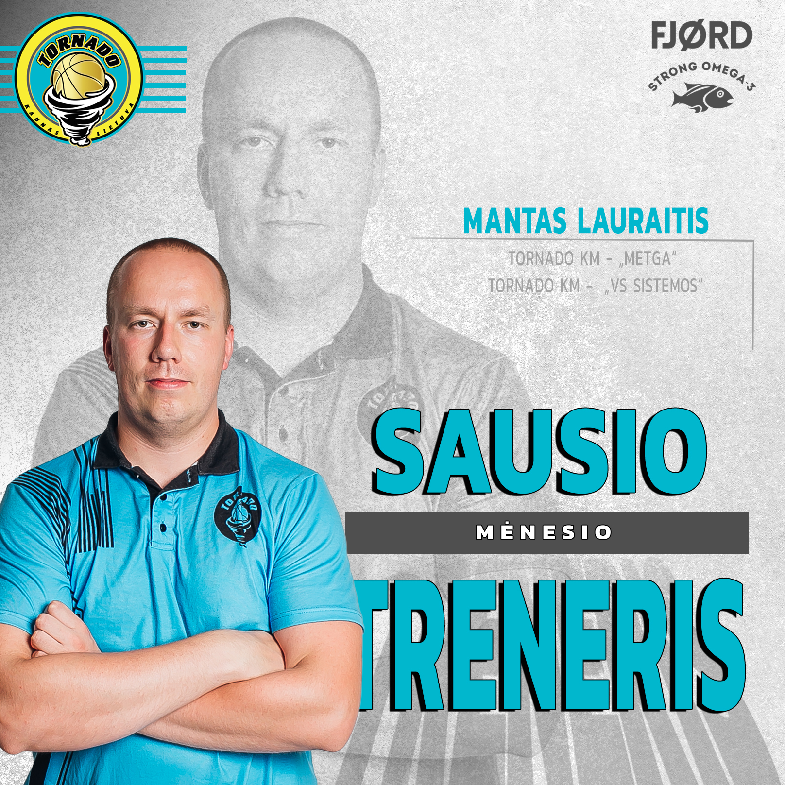Sausio mėnesio treneriu skelbiamas Mantas Lauraitis, demonstravęs sėkmingus rezultatus tiek su Tornado KM - "Metga", tiek su Tornado KM - "VS Sistemos" ekipa. Mėnesio komanda - Tornado KM - "Metga"!