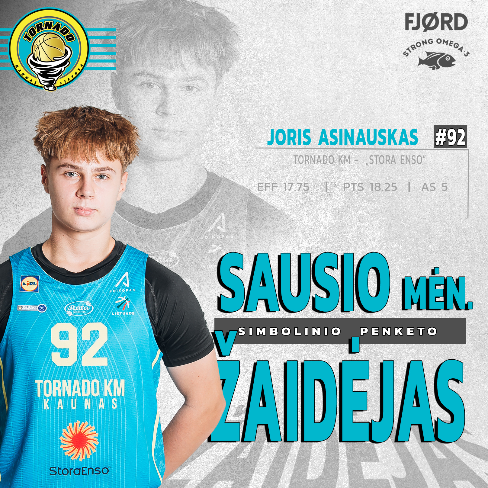 Sausio mėnesį Lietuvos moksleivių krepšinio lygos (MKL) sezonas tęsėsi pilnu tempu – rungtynių ritme gyveno visos mūsų komandos. Kaip ir kiekvieną mėnesį, Tornado krepšinio mokyklos treneriai išrinko simbolinį penketą žaidėjų, kurie aikštelėje išsiskyrė ne tik solidžiais rezultatais, bet ir atsakomybe, nuosekliu darbu bei svarbiu indėliu į komandų pergales.