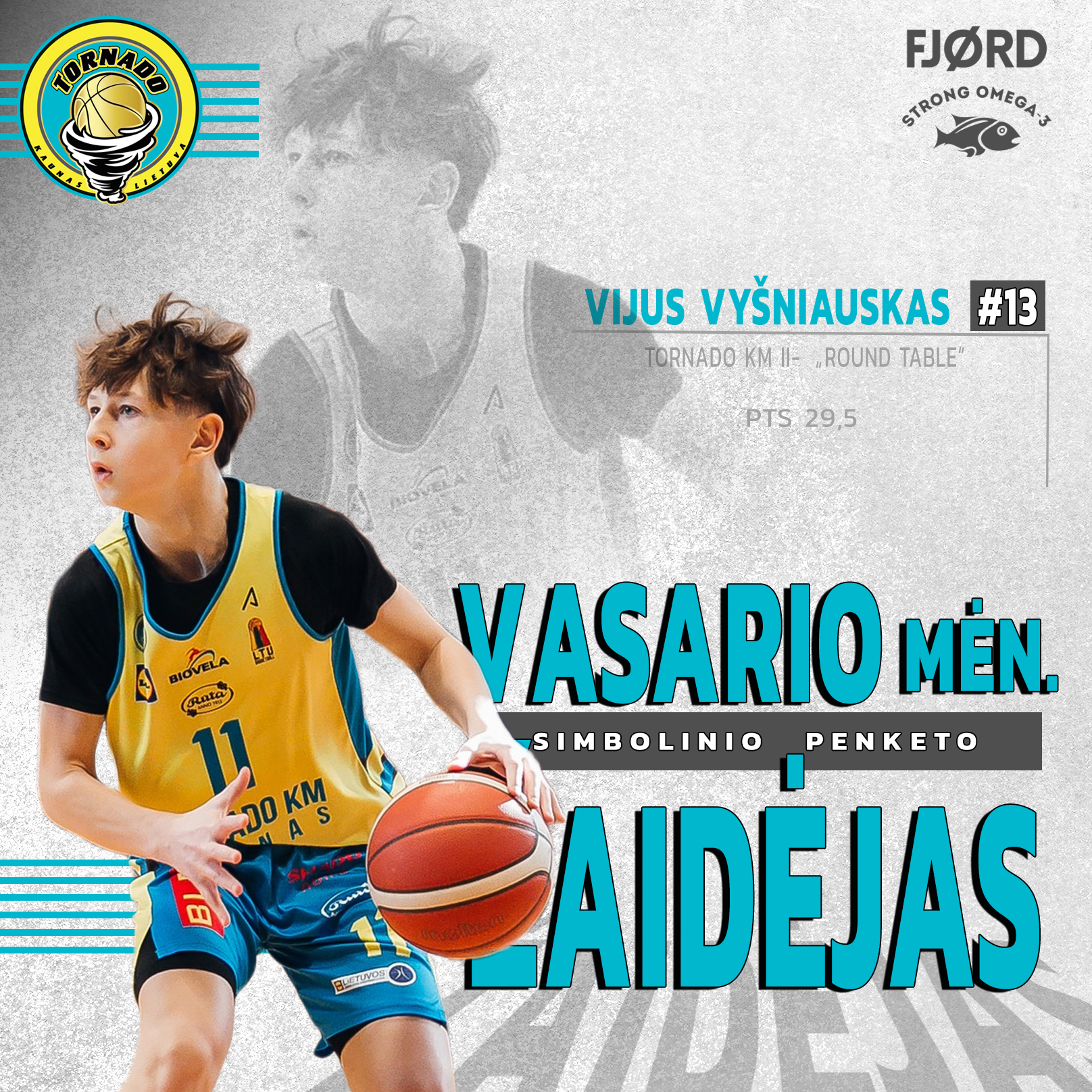 Vasario mėnesį Lietuvos moksleivių krepšinio lygos (MKL) sezonas artėjo prie lemiamų etapų, o kovos aikštelėje darėsi vis intensyvesnės. Kaip ir kiekvieną mėnesį, Tornado krepšinio mokyklos treneriai išrinko simbolinį penketą žaidėjų, kurie išsiskyrė ne tik rezultatyviu žaidimu, bet ir lyderyste, darbu treniruotėse bei svarbiu indėliu į komandos rezultatus.