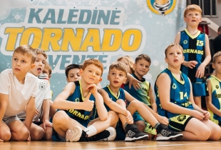 Kalėdinė Tornado KM šventė subūrė jauniausius krepšininkus į judesio ir džiaugsmo kupiną renginį su Kalėdų Seneliu.